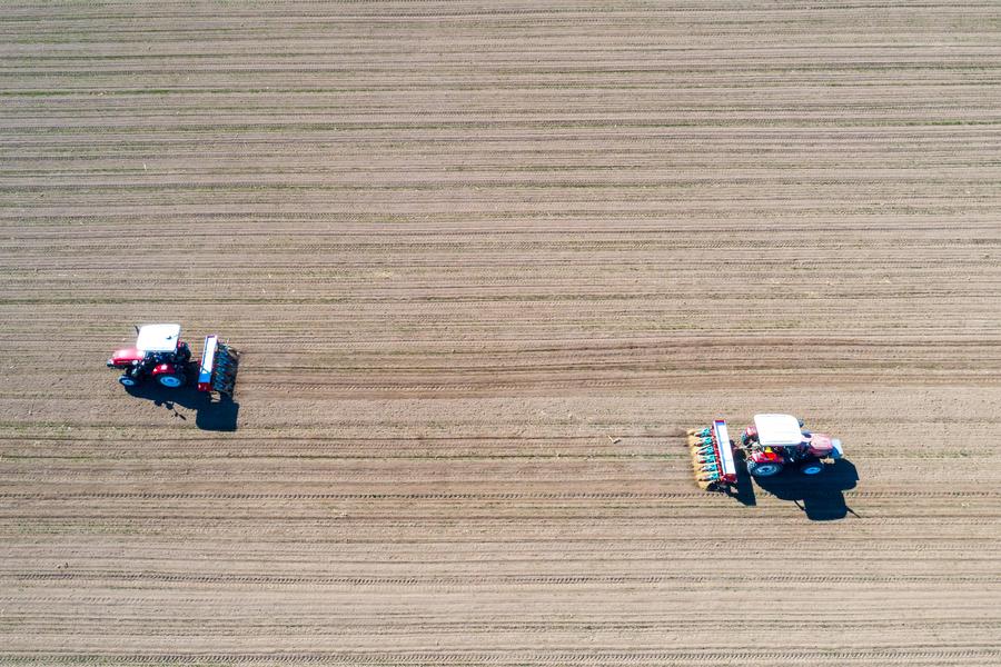BEIJING, April 1 (Xinhua) -- As temperatures warm up across China, spring farming is in full swing in the country's major grain-producing regions, following the age-old rhythms of nature. Unlike in the past, however, Chinese farmers are now farming not only on fertile land, but also on the once-barren saline-alkali soil.