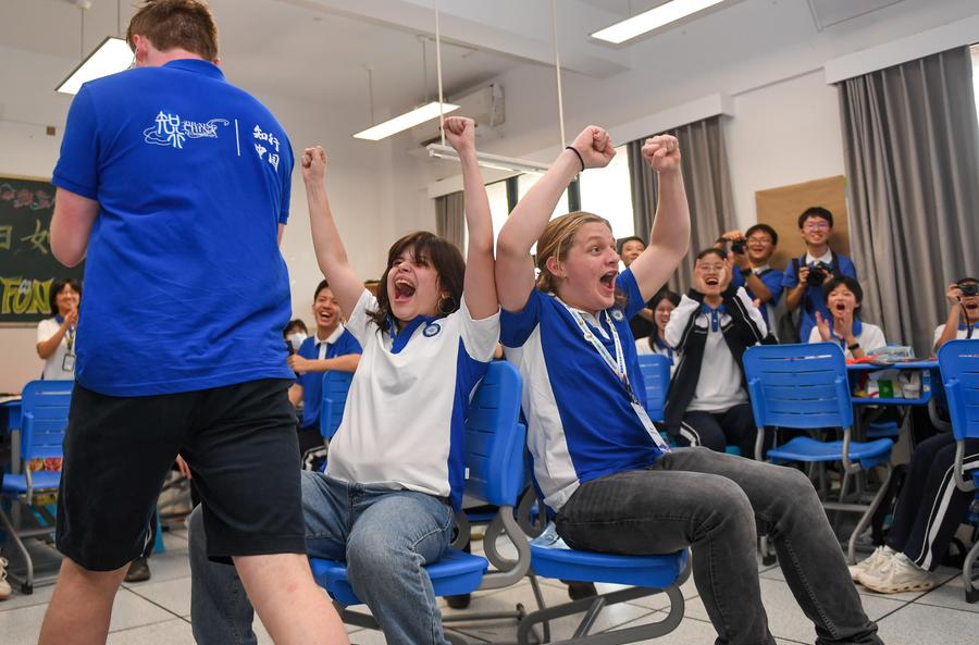 Members of a delegation of high school students from the U.S. state of Washington experience China's school life at Shenzhen Nanshan Foreign Language Senior High School in Shenzhen, south China's Guangdong Province, March 25, 2024. (Xinhua/Mao Siqian)