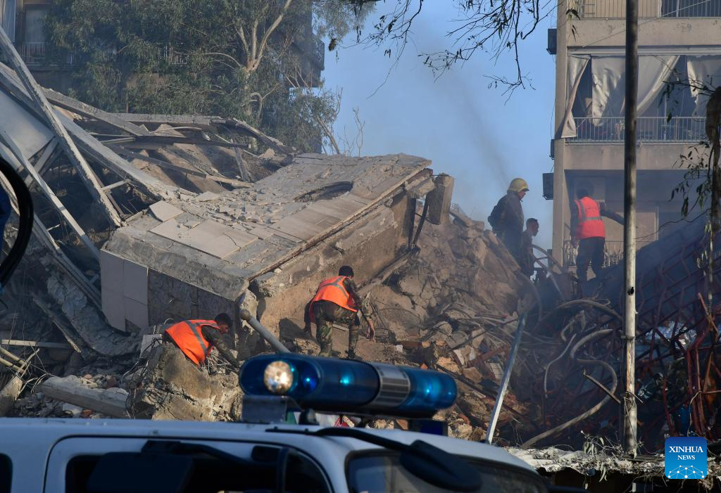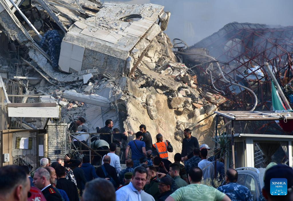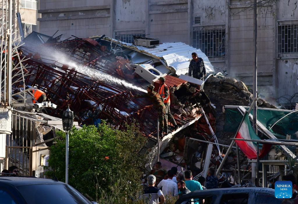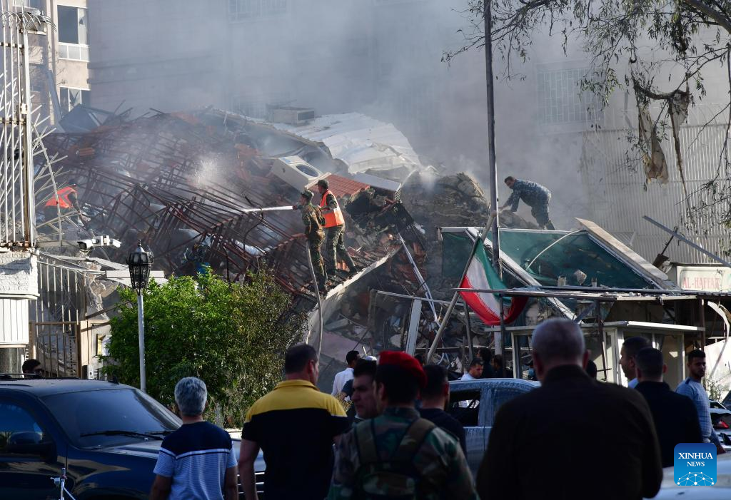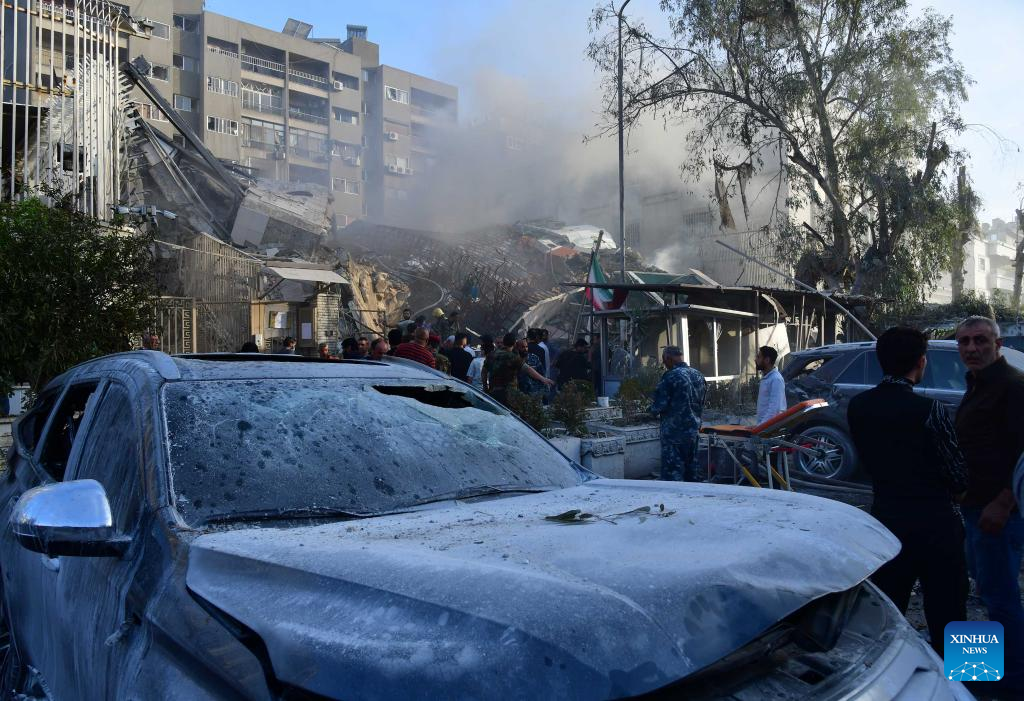 DAMASCUS/TEHRAN, April 1 (Xinhua) -- At least five people, including a senior Iranian commander, were killed in Israeli airstrikes on the building of the Iranian consulate in the Syrian capital Damascus on Monday, according to the Iranian ambassador to Syria and other sources.