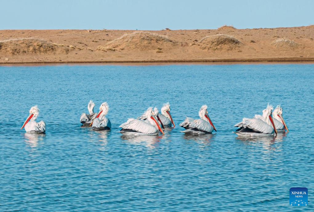 HOHHOT, April 1 (Xinhua) -- The Dalmatian pelican, a freshwater bird species under China's first-class protection, was spotted in Urad Grassland, in north China's Inner Mongolia Autonomous Region, according to local forestry and grassland authorities.
