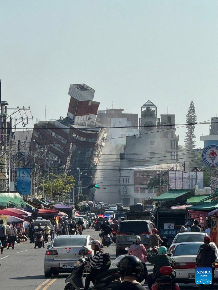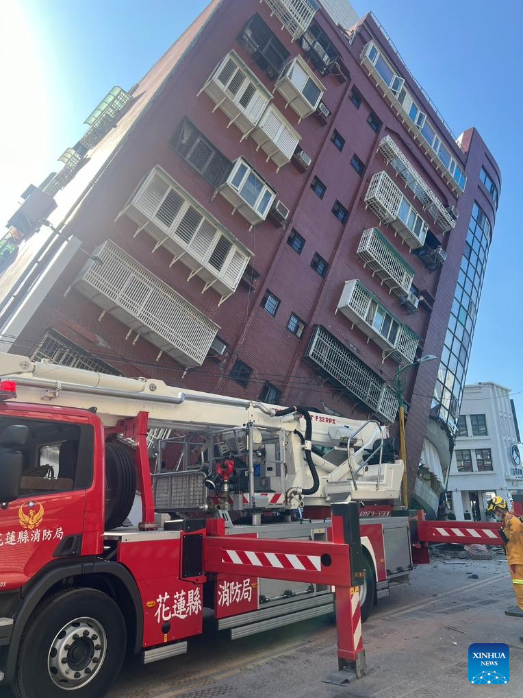 TAIPEI/BEIJING, April 3 (Xinhua) -- A 7.3-magnitude earthquake jolted the sea area near Hualien in China's Taiwan on Wednesday, leading to the suspension of work and school classes in Hualien.