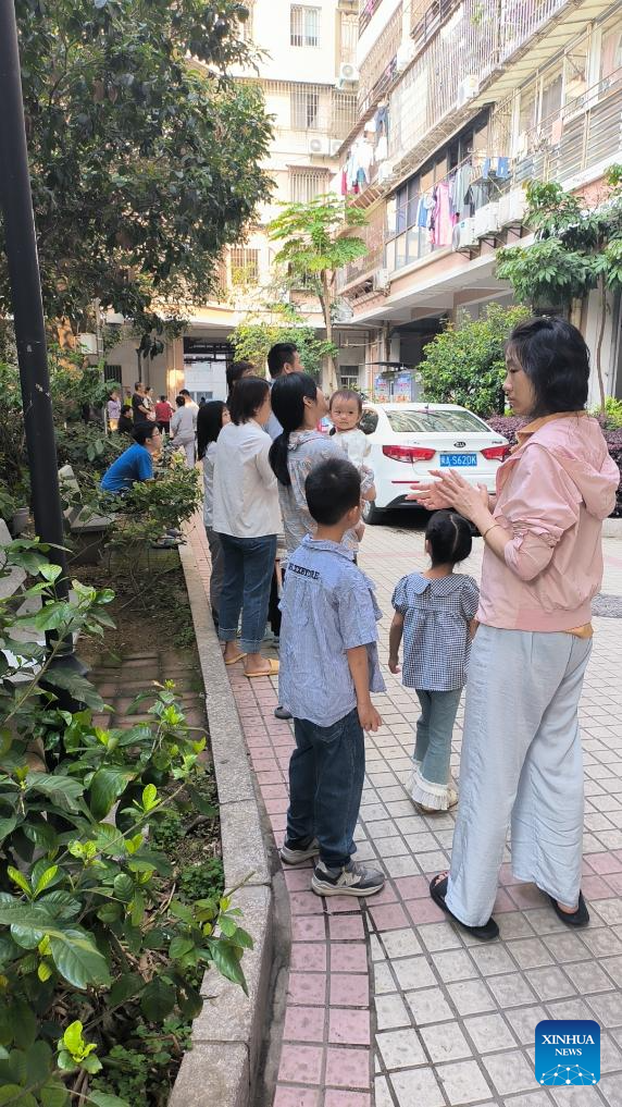 Residents take shelter in an open space at a community in Gulou District in Fuzhou, southeast China's Fujian Province, April 3, 2024. A 7.3-magnitude earthquake jolted the sea area near Hualien of China's Taiwan at 7:58 a.m. Wednesday (Beijing Time), according to the China Earthquake Networks Center (CENC). The epicenter was monitored at 23.81 degrees north latitude and 121.74 degrees east longitude, at a depth of 12 km, said a report issued by the CENC. Strong tremors were felt in Fuzhou. (Photo by Wan Zheng/Xinhua)