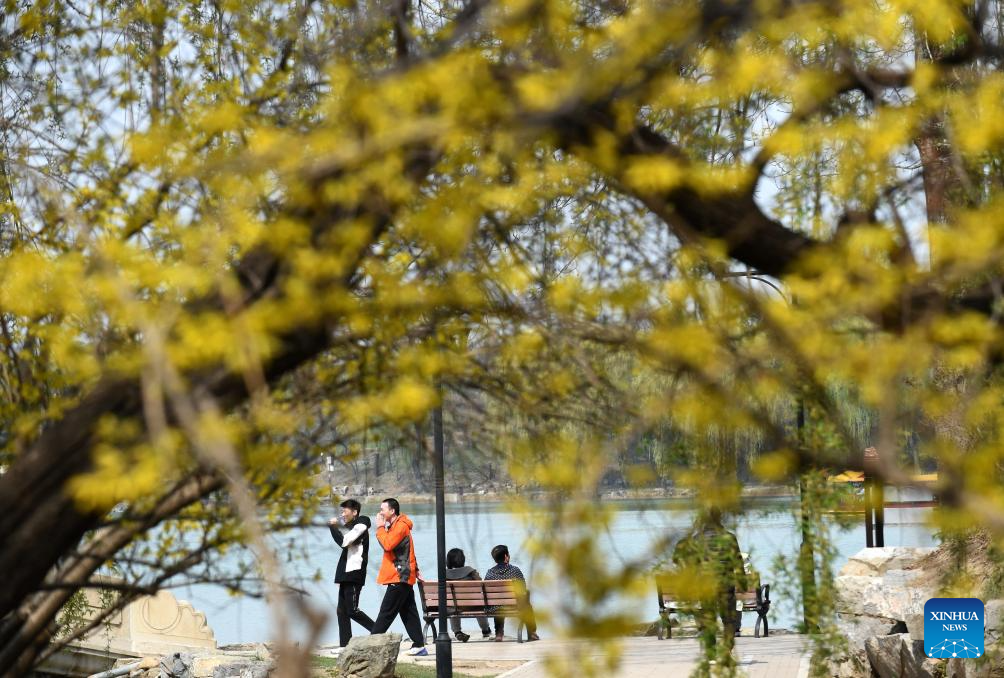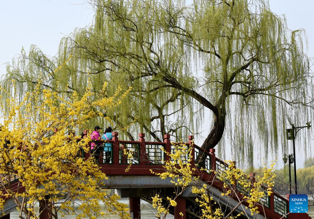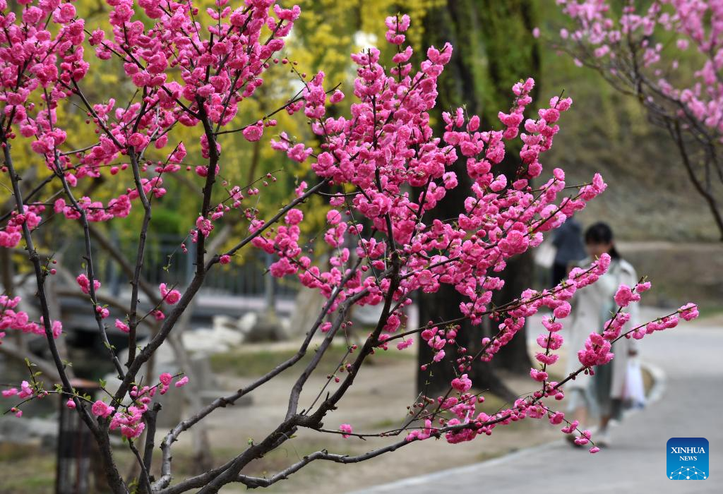 Tourists visit Yuanmingyuan Park in Beijing, capital of China, April 2, 2024. Blooming flowers and traditional gardens attracted many visitors to enjoy spring at Yuanmingyuan Park in Beijing. (Xinhua/Luo Xiaoguang)