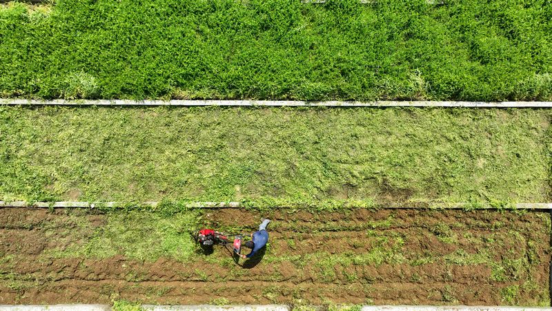 In Heping village, Tuanze township, Huichuan district of Zunyi city, villagers were operating machines to place green manure crops into the soil.