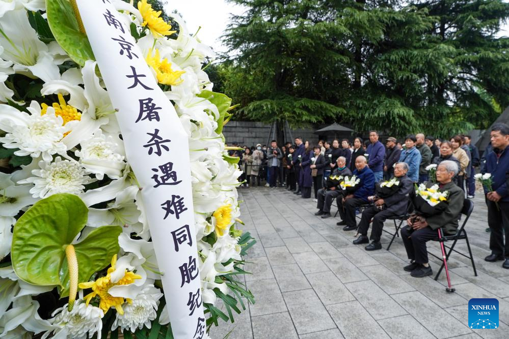This photo taken on April 3, 2024 shows a memorial ceremony at the Memorial Hall of the Victims in Nanjing Massacre by Japanese Invaders, in Nanjing, east China's Jiangsu Province.