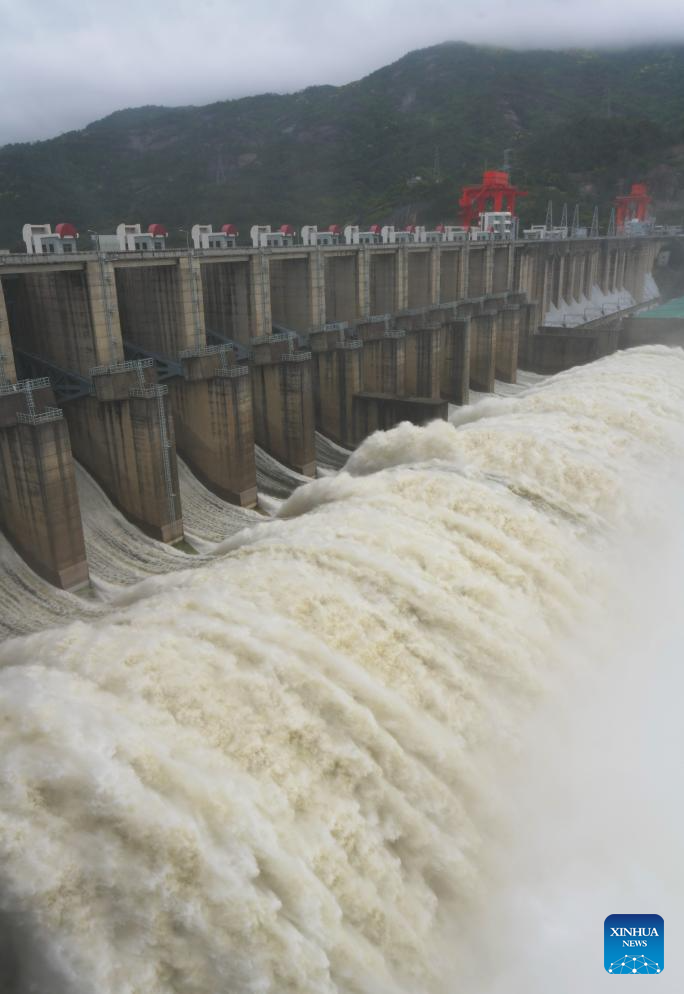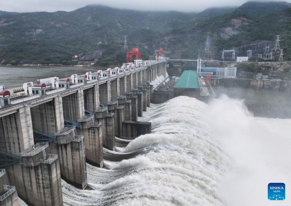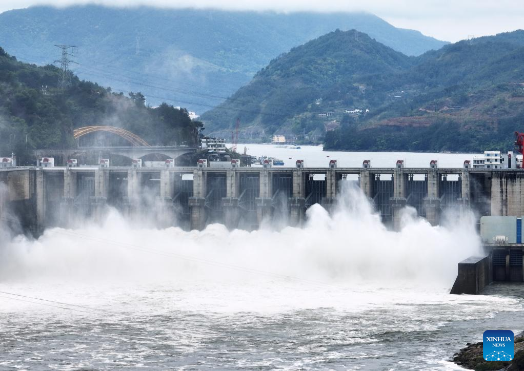 Shuikou Hydropower Station opens sluices for water discharge in Fujian
