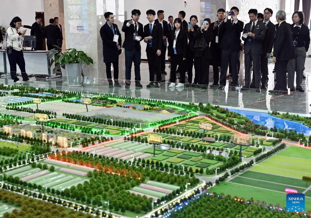 Members of a delegation of young people from Taiwan led by Ma Ying-jeou, former chairman of the Chinese Kuomintang party, visit a cloud control center of Yangling agricultural hi-tech industrial demonstration zone in northwest China's Shaanxi Province, April 5, 2024. A delegation of young people from Taiwan led by Ma visited the Yangling agricultural hi-tech industrial demonstration zone on Friday. (Xinhua/Chen Yehua)