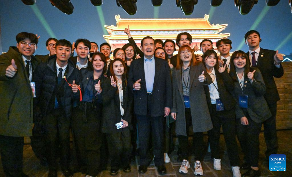 Members of a delegation of young people from Taiwan led by Ma Ying-jeou, former chairman of the Chinese Kuomintang party, visit the Yongning Gate of the ancient city wall in Xi'an, northwest China's Shaanxi Province, April 5, 2024. A delegation of young people from Taiwan led by Ma visited the ancient city wall scenic spot in Xi'an on Friday. (Xinhua/Chen Yehua)