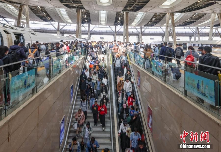 Passengers walk out of Beijing South Railway Station, April 6, 2024. (Photo: China News Service/Jia Tianyong)