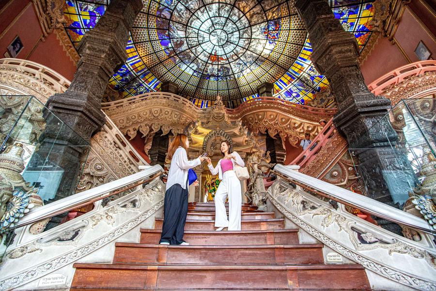 Chinese tourists visit the Erawan Museum in Samut Prakan, Thailand, March 1, 2024. (Xinhua/Wang Teng)