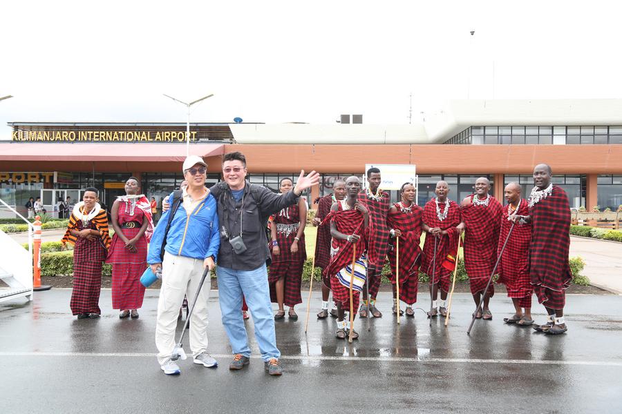 Chinese tourists pose for a photo with local people at the Kilimanjaro International Airport in Kilimanjaro Region, Tanzania, April 22, 2023. (Photo by Nurdin Pallangyo/Xinhua)