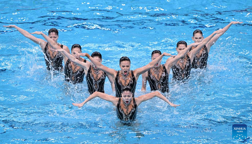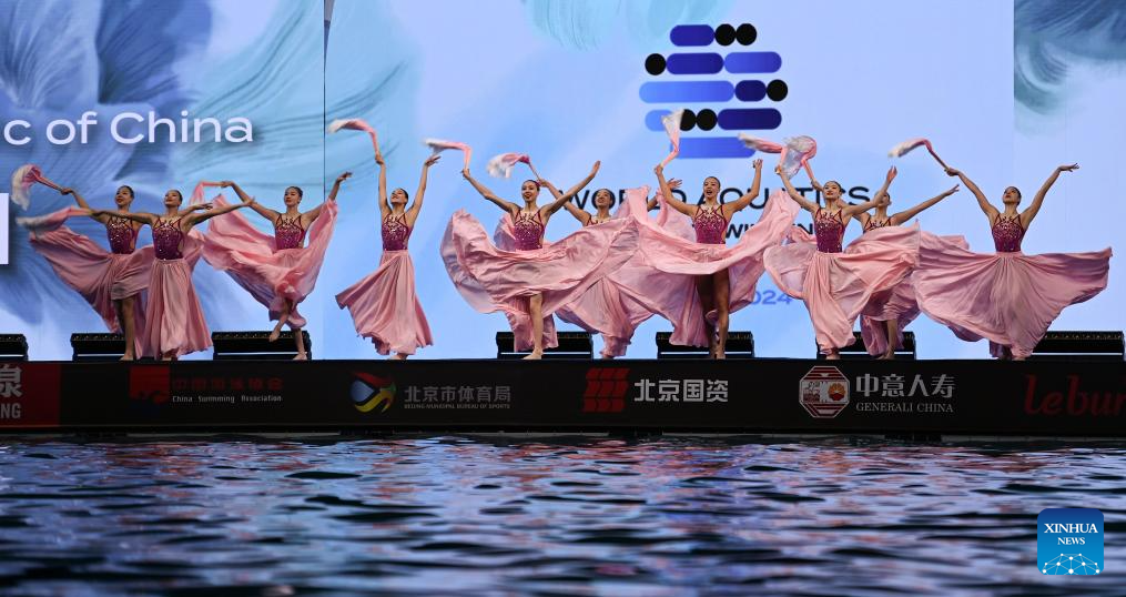 Representatives of team China perform during the Gala at the World Aquatics Artistic Swimming World Cup 2024 in Beijing, capital of China, April 7, 2024. (Xinhua/Xia Yifang)