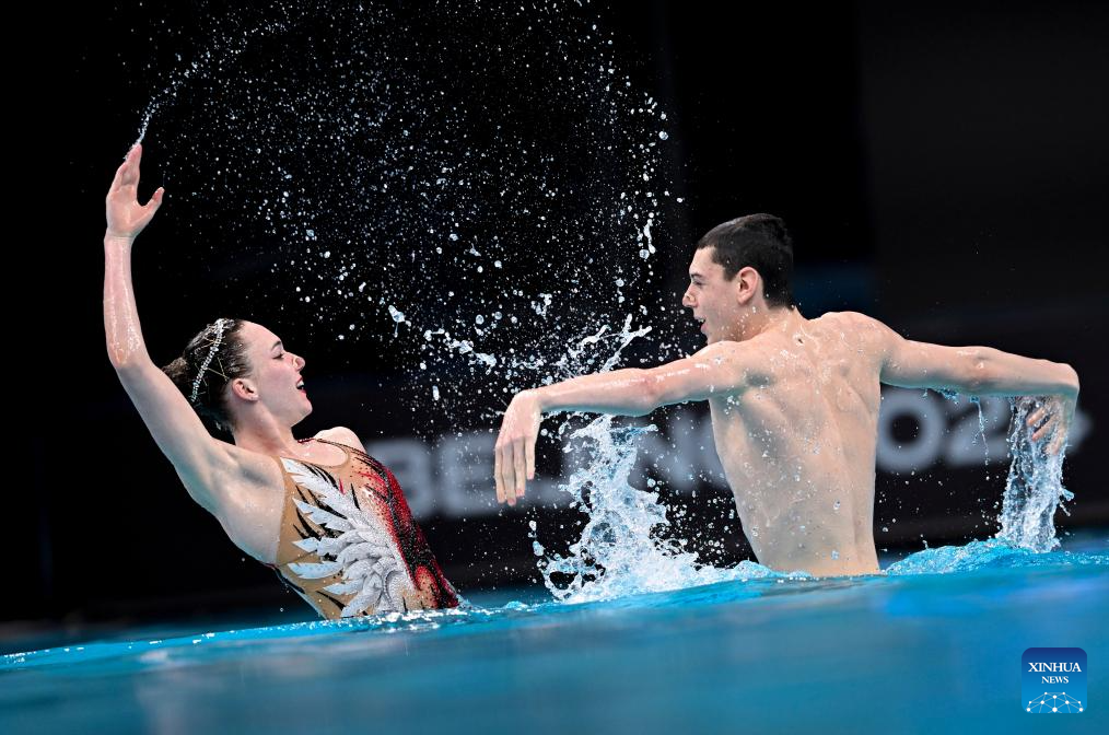 Filippo Pelati (R)/Flaminia Vernice of Italy compete during the mixed duet free final at the World Aquatics Artistic Swimming World Cup 2024 in Beijing, capital of China, April 7, 2024. (Xinhua/Xia Yifang)