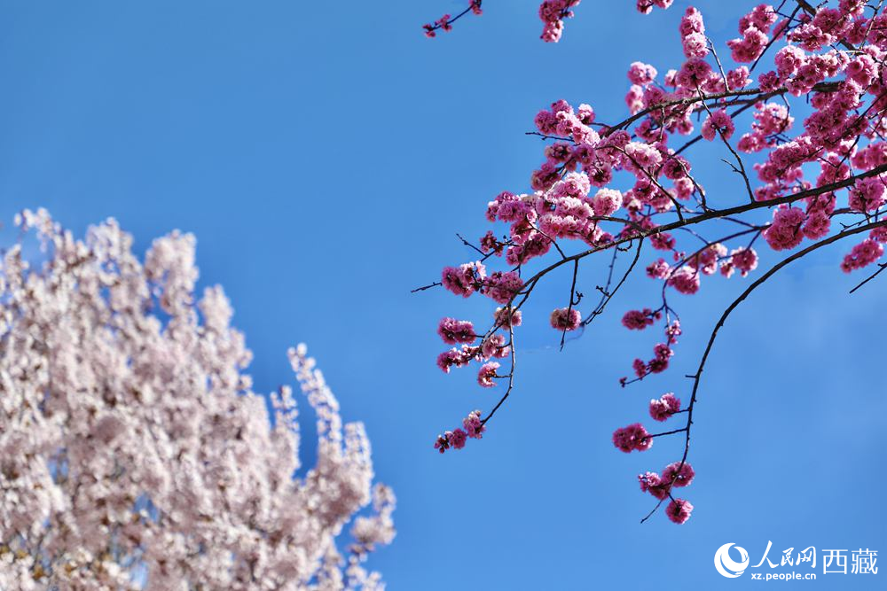 Photo shows peach flowers in Lhasa, southwest China's Xizang Autonomous Region. (People's Daily Online/Tsering Norbu)