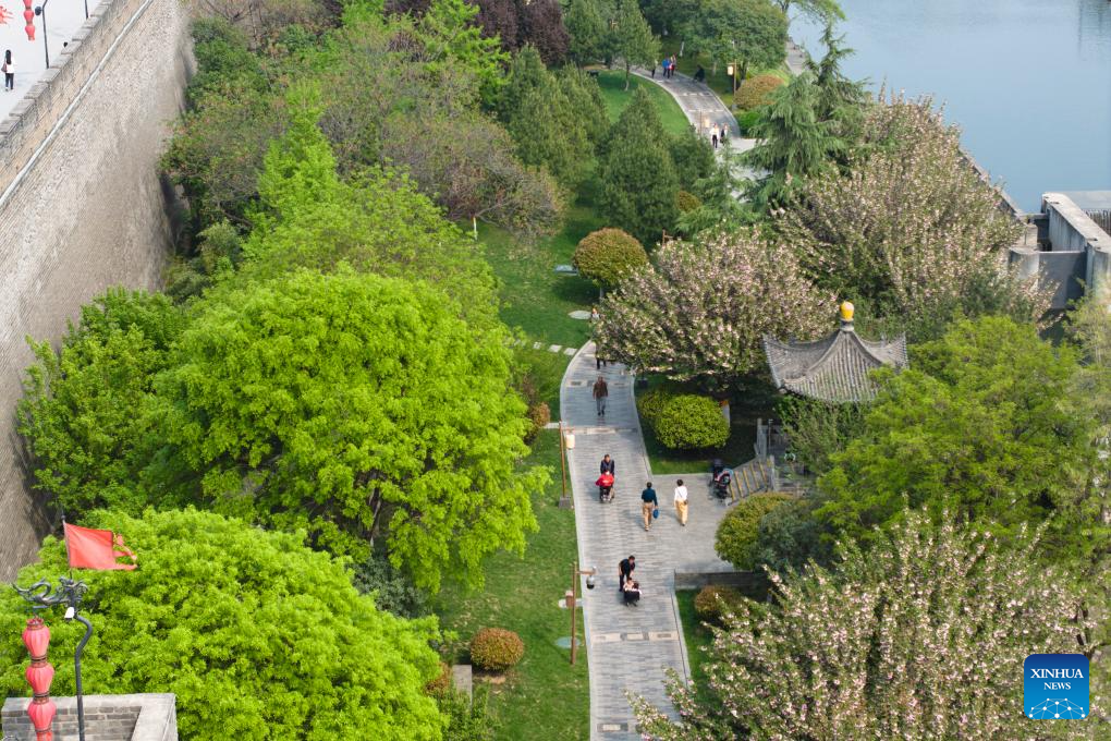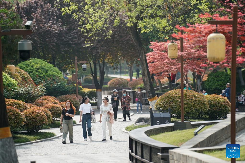 People enjoy leisure time at a park in Xi'an, northwest China's Shaanxi Province, April 8, 2024. (Xinhua/Shao Rui)