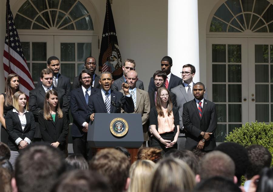U.S. President Barack Obama makes a statement on student loans in the Rose Garden of the White House in Washington, D.C. on May 31, 2013. Obama called on Congress to help keep college affordable for middle-class families and students by preventing student loan interest rates from doubling. (Xinhua/Fang Zhe)