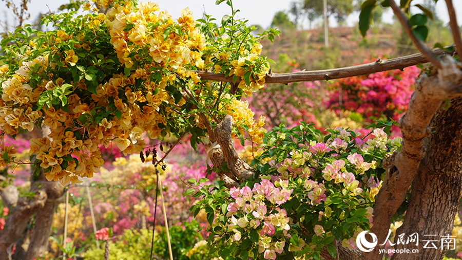 Photos shows the blossoms of bougainvillea in a park in Simao district of Pu'er city, southwest China's Yunnan Province. (Photo/Xu Xiaofang)