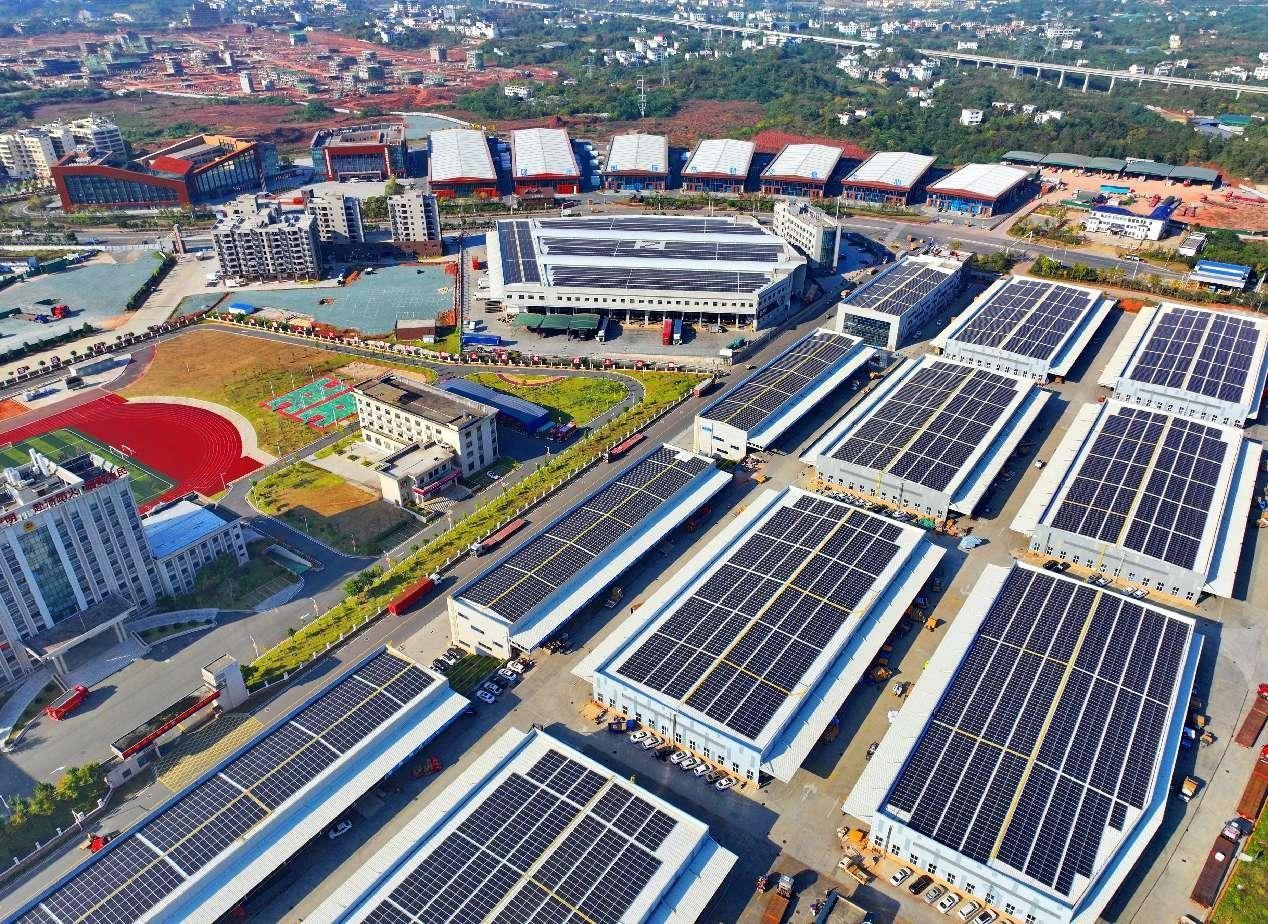 Photo shows photovoltaic panels installed on rooftops of warehouses in Ganzhou International Inland Port, east China's Jiangxi province. (People's Daily Online/Zhu Haipeng)