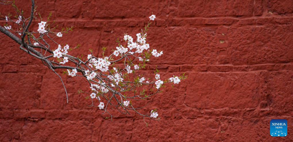 Peach flowers are seen at the Pabonka Hermitage in the northern suburb of Lhasa, capital of southwest China's Xizang Autonomous Region, April 5, 2024. (Xinhua/Tenzing Nima Qadhup)
