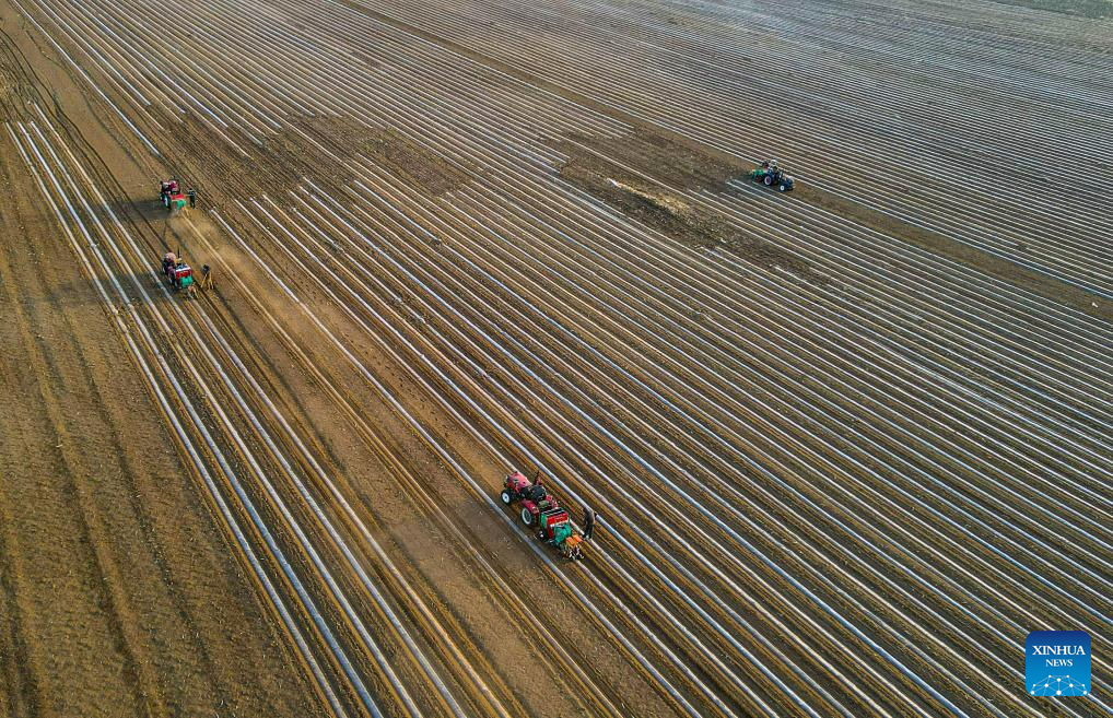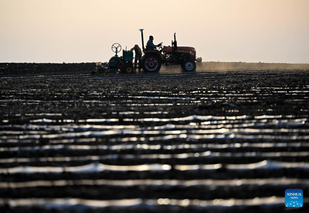 Farmers sow corn seeds in Horqin Right Wing Front Banner, Hinggan League, north China's Inner Mongolia Autonomous Region, on April 9, 2024. (Xinhua/Peng Yuan)