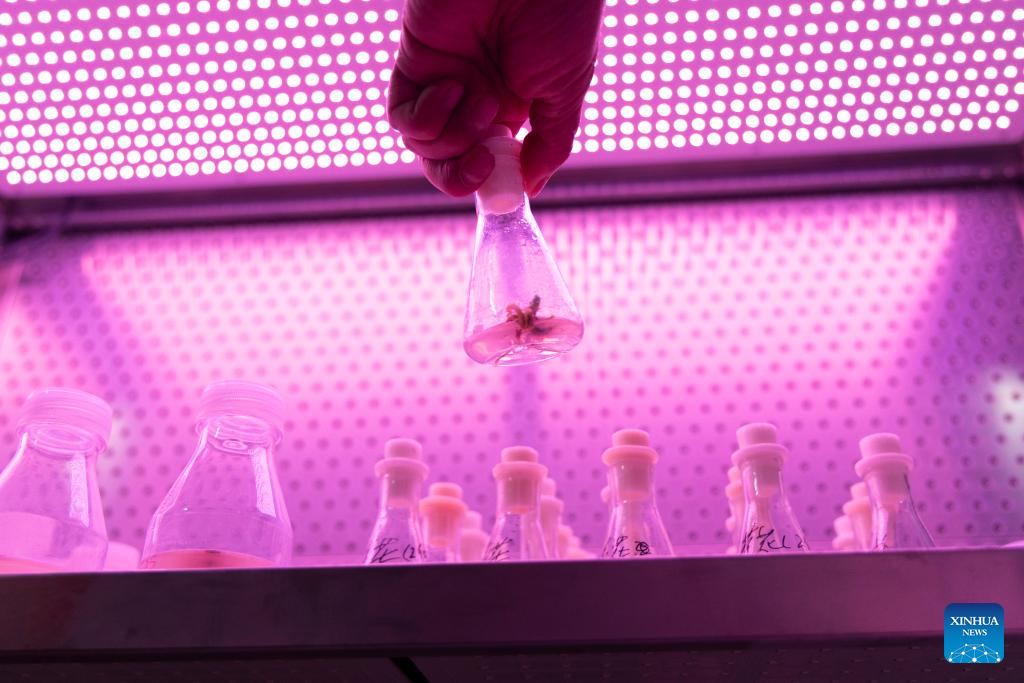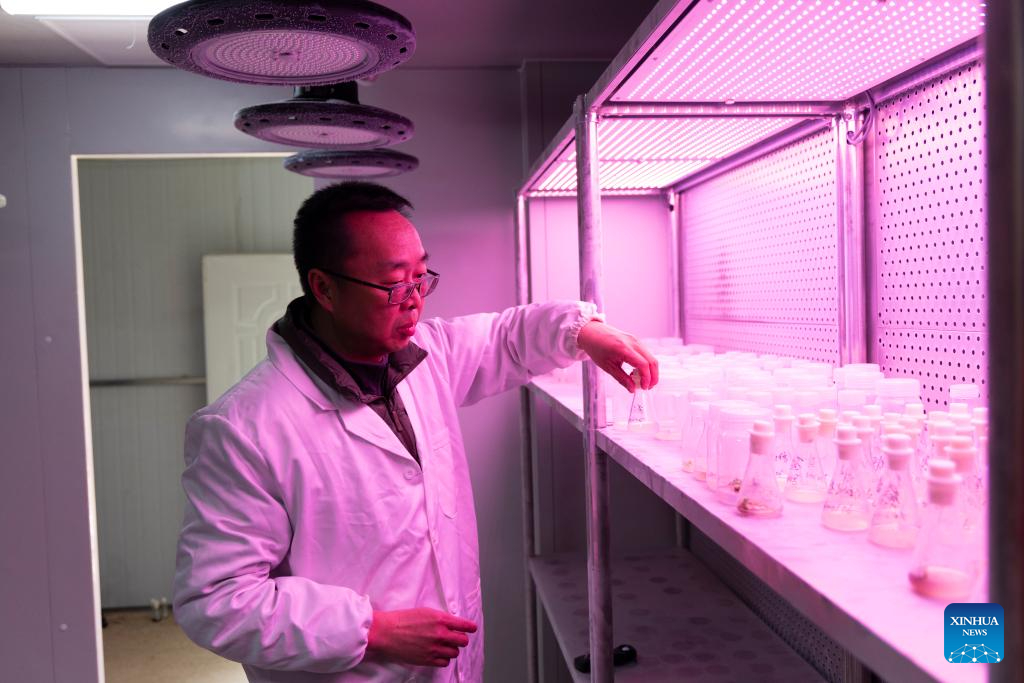 Xu Kun checks the germination of the seeds of Cypripedium flavum at the Lijiang Alpine Botanic Garden in Lijiang, southwest China's Yunnan Province, March 27, 2024. (Xinhua/Jin Liwang)