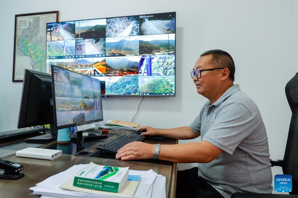 A staff member checks the condition of a forest farm with an intelligent forest monitoring platform in Miyi County of Panzhihua, southwest China's Sichuan Province, April 10, 2024. As the high temperature and dry weather has continued since February in Miyi County of Sichuan, local forestry department has reinforced fire prevention and control work against any potential risks threatening the safety of the forest resources. (Xinhua/Shen Bohan)