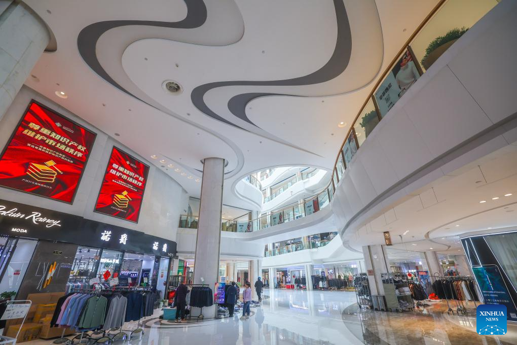 This photo taken on April 9, 2024 shows a view of a knitwear market in Puyuan Town of east China's Zhejiang Province. (Xinhua/Xu Yu)