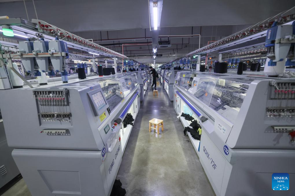 This photo taken on April 9, 2024 shows a digital knitwear workshop at a fashion company in Puyuan Town of east China's Zhejiang Province. (Xinhua/Xu Yu)