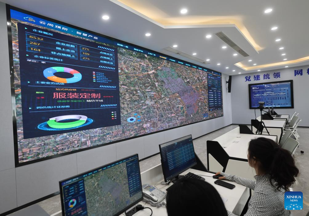 This photo taken on April 9, 2024 shows an integrated digital platform in Puyuan Town of east China's Zhejiang Province. (Xinhua/Xu Yu)