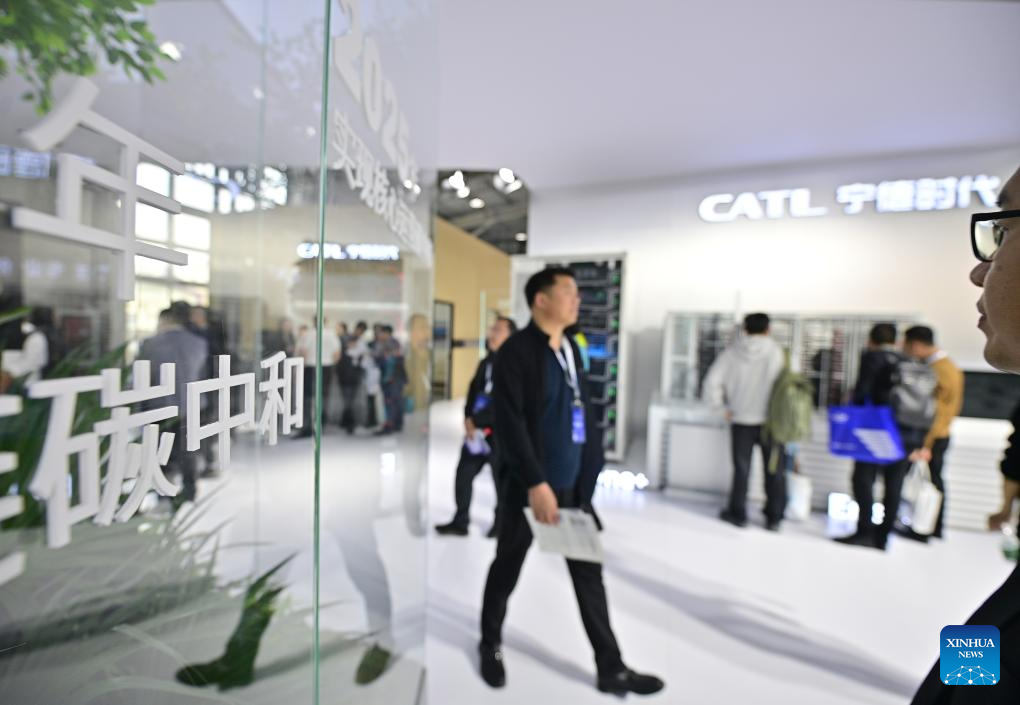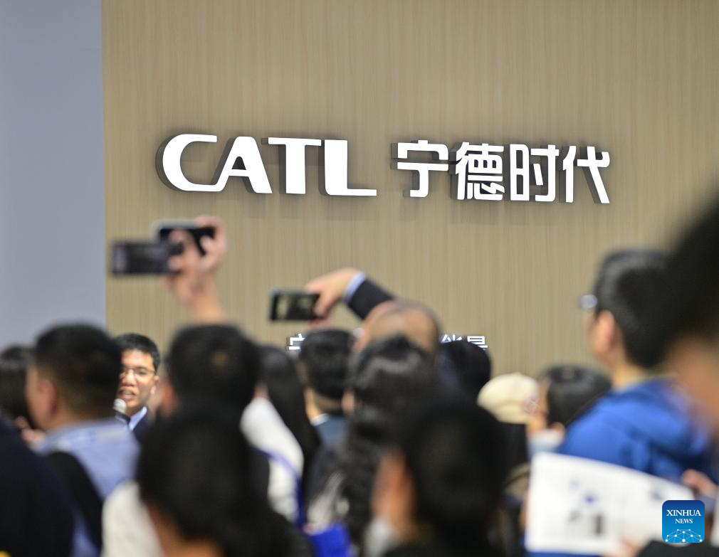 People visit the booth of CATL at the 12th Energy Storage International Conference and Expo (ESIE) at Shougang Exhibition and Convention Center in Beijing, capital of China, April 11, 2024. The 12th ESIE, opening from April 10 to 13, features an exhibition area of more than 150,000 square meters. (Xinhua/Yin Dongxun)