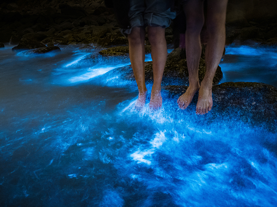 A photo shows the "blue tears" illuminate the waters off the coast of Pingtan island in southeast China's Fujian Province. (Photo by Ye Minmin)