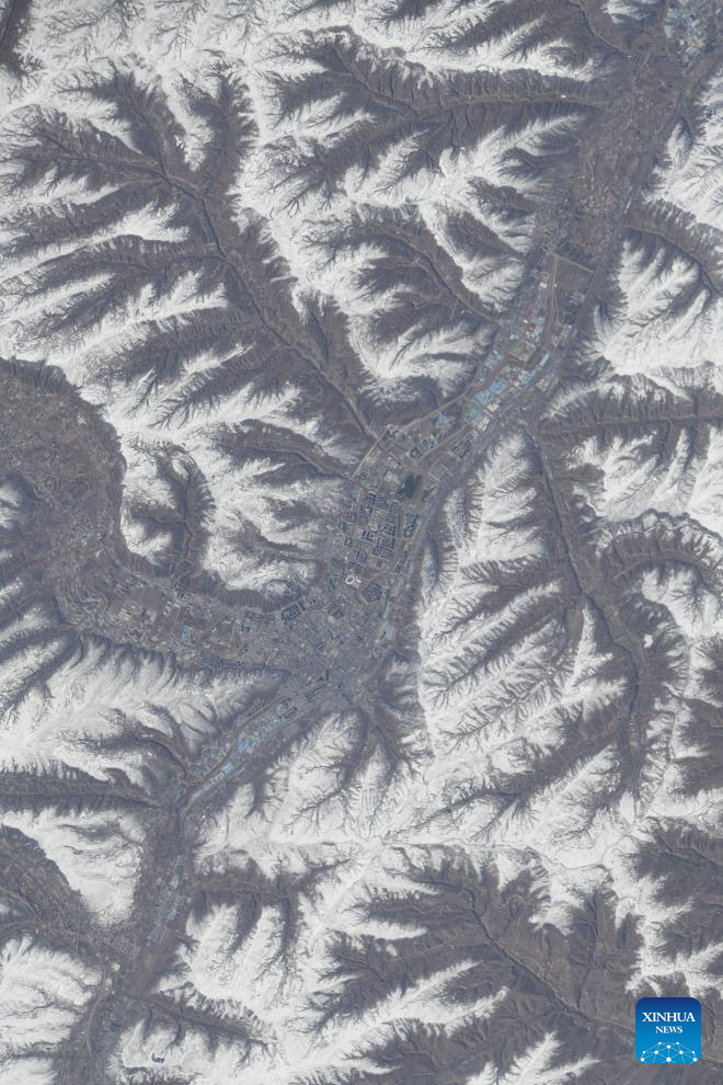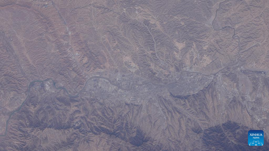 This undated photo taken from China's space station by Shenzhou-17 crew member Tang Hongbo shows a view of Lanzhou in northwest China's Gansu Province. (Xinhua)