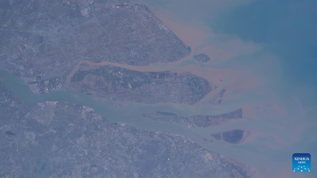 This undated photo taken from China's space station by Shenzhou-17 crew member Tang Hongbo shows the estuary of the Yangtze River in east China. (Xinhua)