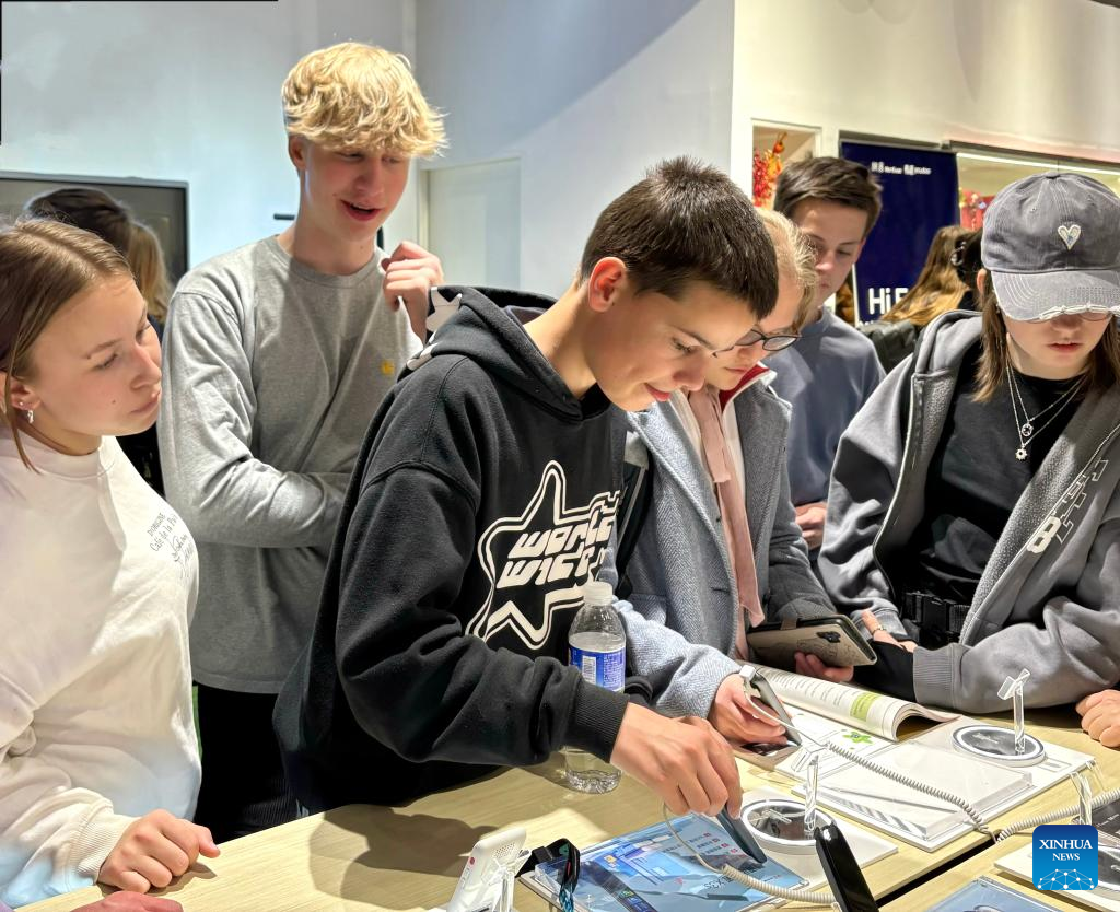 Chinese and German students visit Youdao, a Beijing-based intelligent education subsidiary of China's internet giant NetEase, in Beijing, capital of China, April 9, 2024.(Xinhua/Zhao Xu)