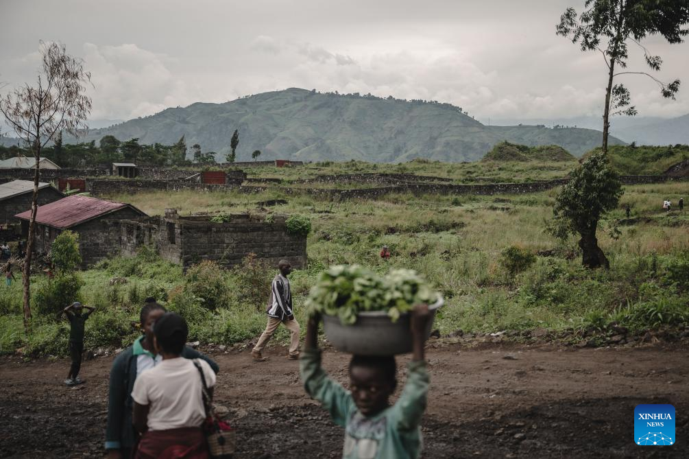 This photo taken on April 11, 2024 shows a part of an internally displaced persons (IDP) camp, home to tens of thousands of war-displaced people, on the outskirts of Goma, eastern Democratic Republic of the Congo. The mountain area in the background is occupied by the M23 rebels. (Xinhua/Wang Guansen)