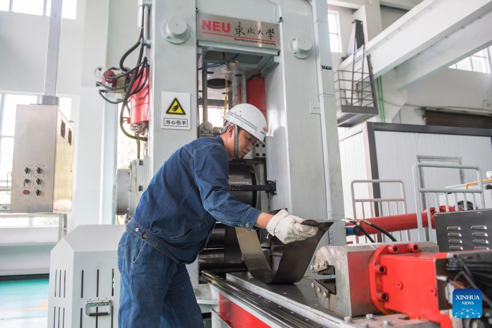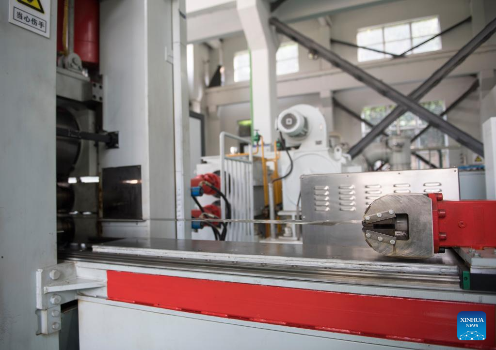 This photo taken on April 10, 2024 shows the 0.015mm ultra-thin high temperature alloy steel strip under processing at Pangang Group in Panzhihua City, southwest China's Sichuan Province. (Xinhua/Zhang Haofu)