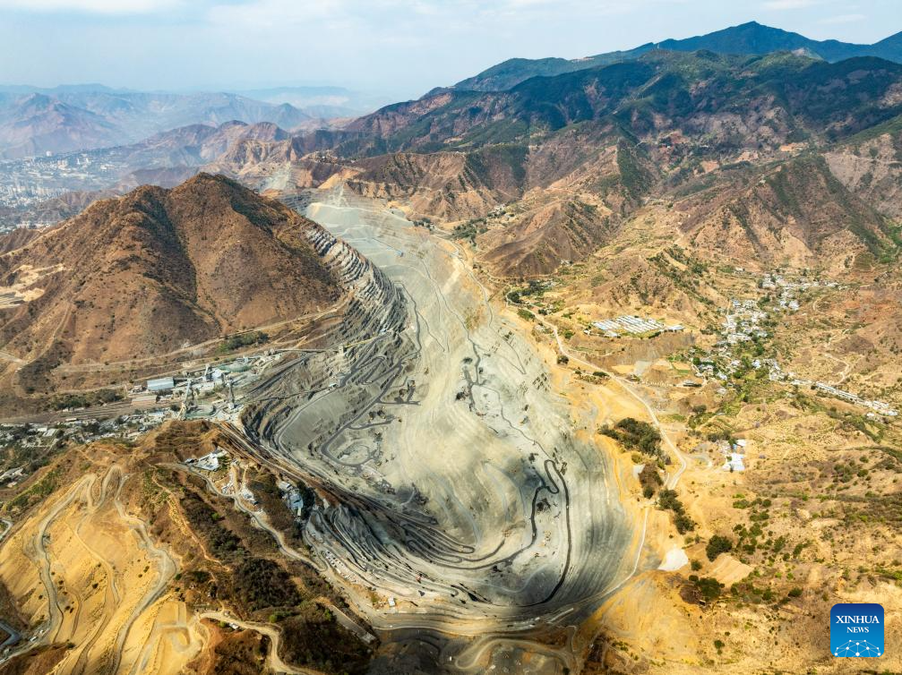 An aerial drone photo taken on April 11, 2024 shows a view of an iron ore mine branch of Pangang Group in Panzhihua City, southwest China's Sichuan Province. (Xinhua/Shen Bohan)