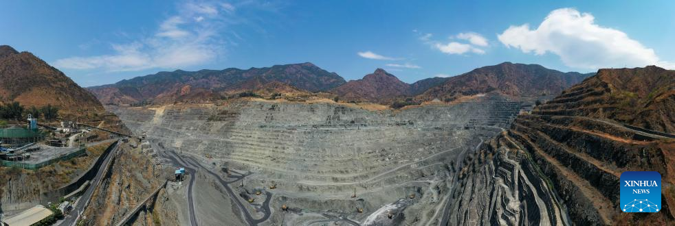 An aerial panoramic drone photo taken on April 11, 2024 shows a view of an iron ore mine branch of Pangang Group in Panzhihua City, southwest China's Sichuan Province. (Xinhua/Zhang Haofu)