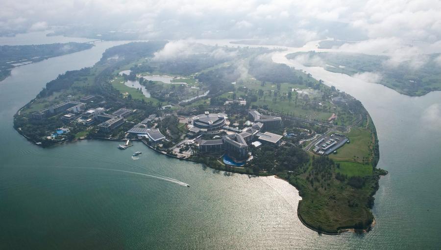 An aerial drone photo taken on March 17, 2024 shows the Boao near-zero carbon demonstration zone in Boao, south China's Hainan Province. (Xinhua/Yang Guanyu)