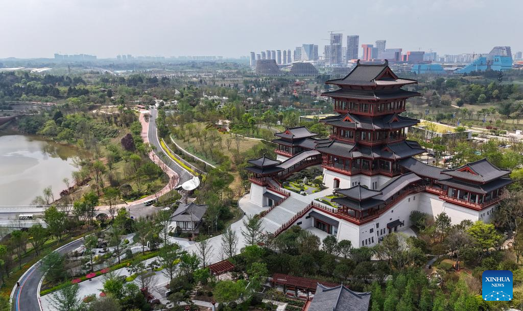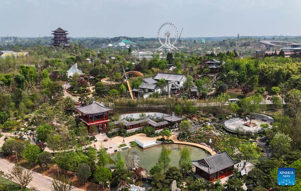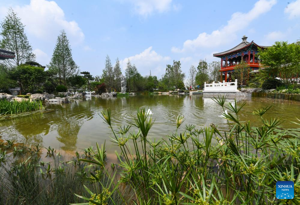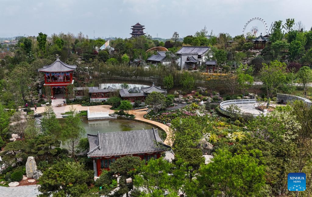 This photo taken on April 12, 2024 shows the Zhengzhou Garden of the International Horticultural Exhibition 2024 Chengdu in Chengdu, southwest China's Sichuan Province. The expo will run from April 26 to Oct. 28, during which time more than 2,000 events and cultural activities will be held. (Xinhua/Wang Xi)