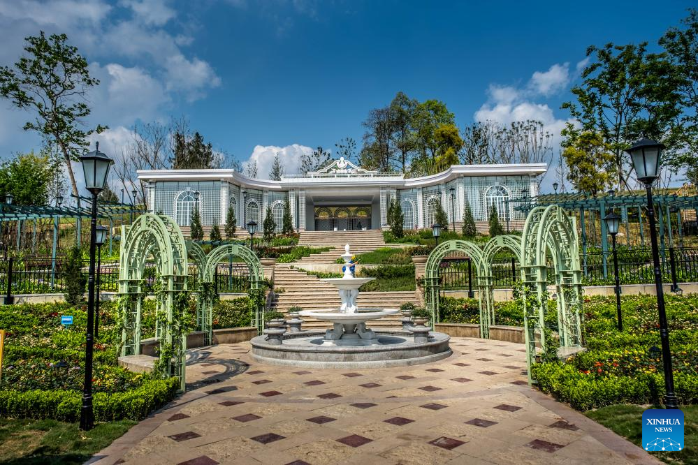 This photo taken on April 12, 2024 shows the Qingdao Garden of the International Horticultural Exhibition 2024 Chengdu in Chengdu, southwest China's Sichuan Province. The expo will run from April 26 to Oct. 28, during which time more than 2,000 events and cultural activities will be held. (Xinhua/Wang Xi)