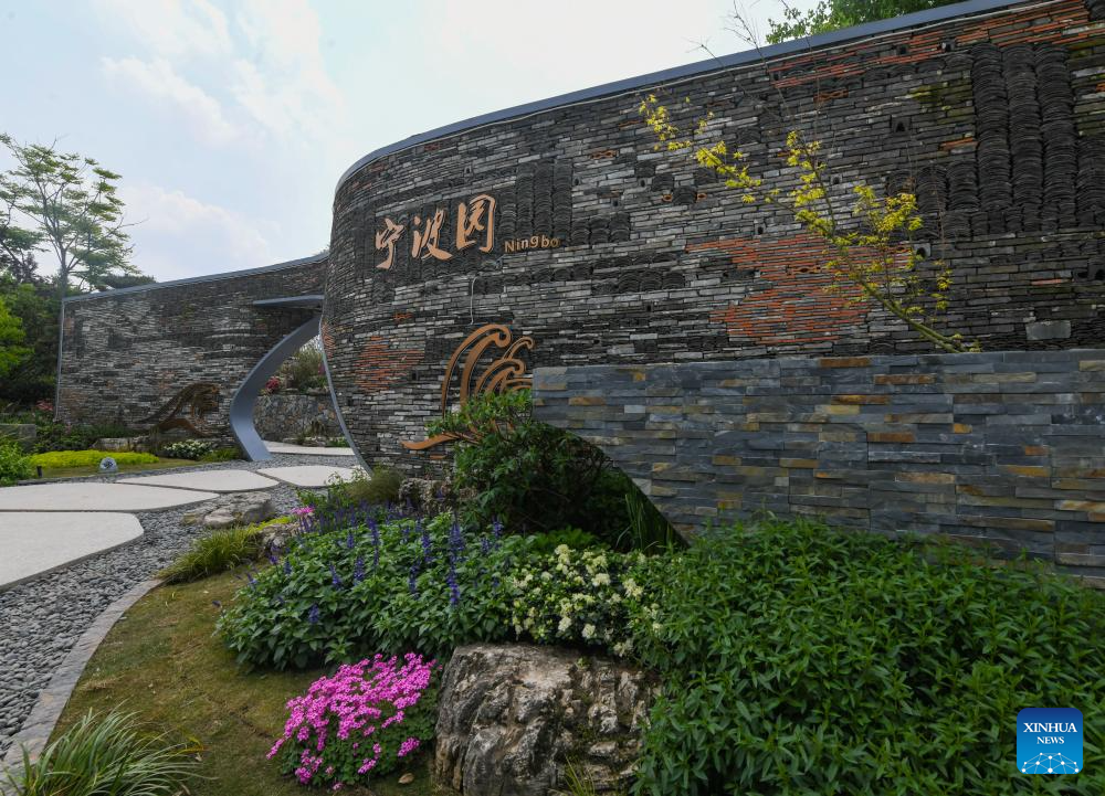 This photo taken on April 12, 2024 shows the Ningbo Garden of the International Horticultural Exhibition 2024 Chengdu in Chengdu, southwest China's Sichuan Province. The expo will run from April 26 to Oct. 28, during which time more than 2,000 events and cultural activities will be held. (Xinhua/Wang Xi)