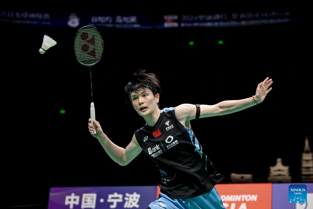 NINGBO, April 14 (Xinhua) -- With three golds, three silvers, and seven bronze medals, China's badminton team asserted its dominance in the 2024 Badminton Asia Championships here on Sunday.