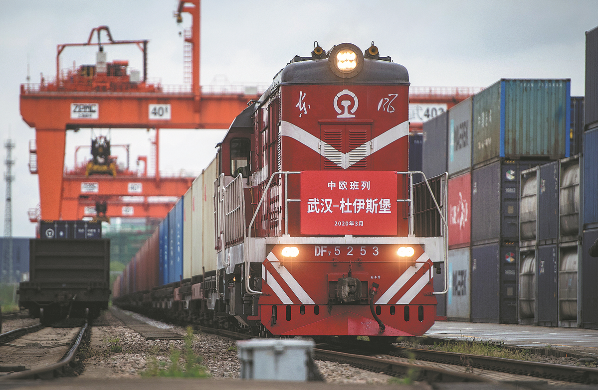 The China-Europe Railway Express bound for Duisburg departs from Wuhan. XIAO YIJIU/XINHUA