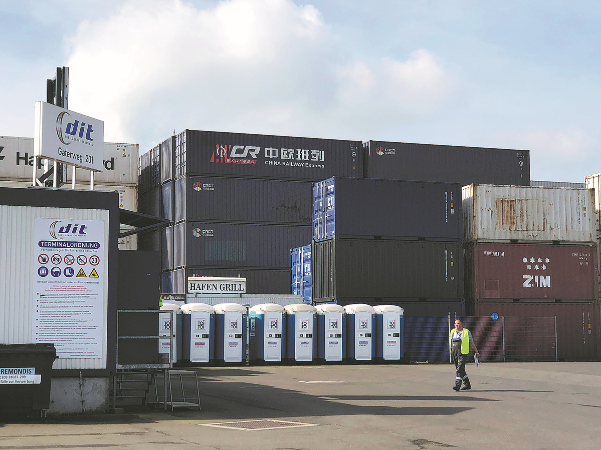 At present, a majority of China-Europe freight trains run into the Duisburg Intermodal Terminal, where containers with signs of China-Europe Railway Express are loaded by gantry cranes between trains, trucks, and barges every day, before setting off on the next leg of their journeys.