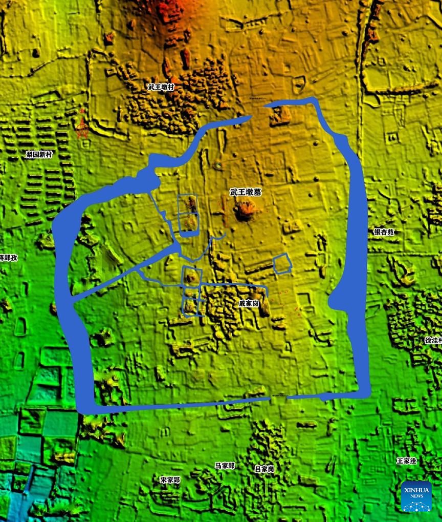This picture shows a layout of the Wuwangdun tomb discovered in Huainan, east China's Anhui Province. (Anhui provincial cultural relics and archaeology research institute/Handout via Xinhua)