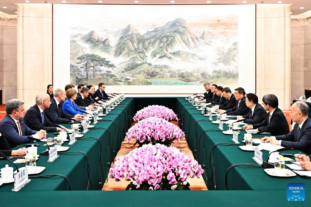 Chinese Vice Premier He Lifeng, also a member of the Political Bureau of the Communist Party of China Central Committee, meets with a German economic delegation accompanying German Chancellor Olaf Scholz on a visit to China, at the Great Hall of the People in Beijing, capital of China, April 16, 2024. (Xinhua/Yan Yan)