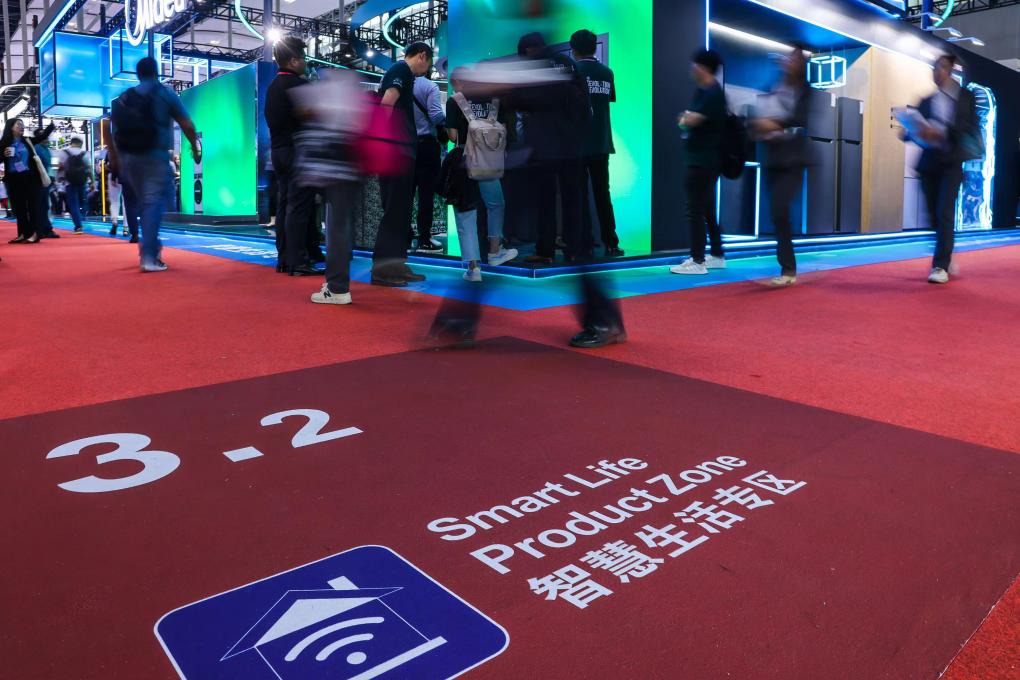People visit the smart life product zone of the 135th session of the China Import and Export Fair, also known as the Canton Fair, in Guangzhou, south China's Guangdong Province, April 15, 2024. The 135th session of the Canton Fair opened Monday in Guangzhou. The smart life product zone of the fair attracted nearly 200 exhibitors and numerous visitors. (Xinhua/Liu Dawei)