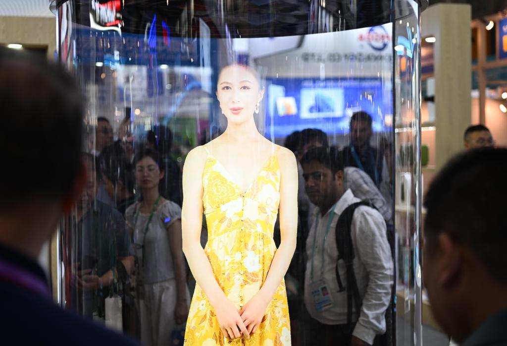 A staff member of iFLYTEK displays a smart screen at the 135th session of the China Import and Export Fair, also known as the Canton Fair, in Guangzhou, south China's Guangdong Province, April 17, 2024. The 135th session of the Canton Fair opened Monday in Guangzhou. The smart life product zone of the fair attracted nearly 200 exhibitors and numerous visitors. (Xinhua/Deng Hua)