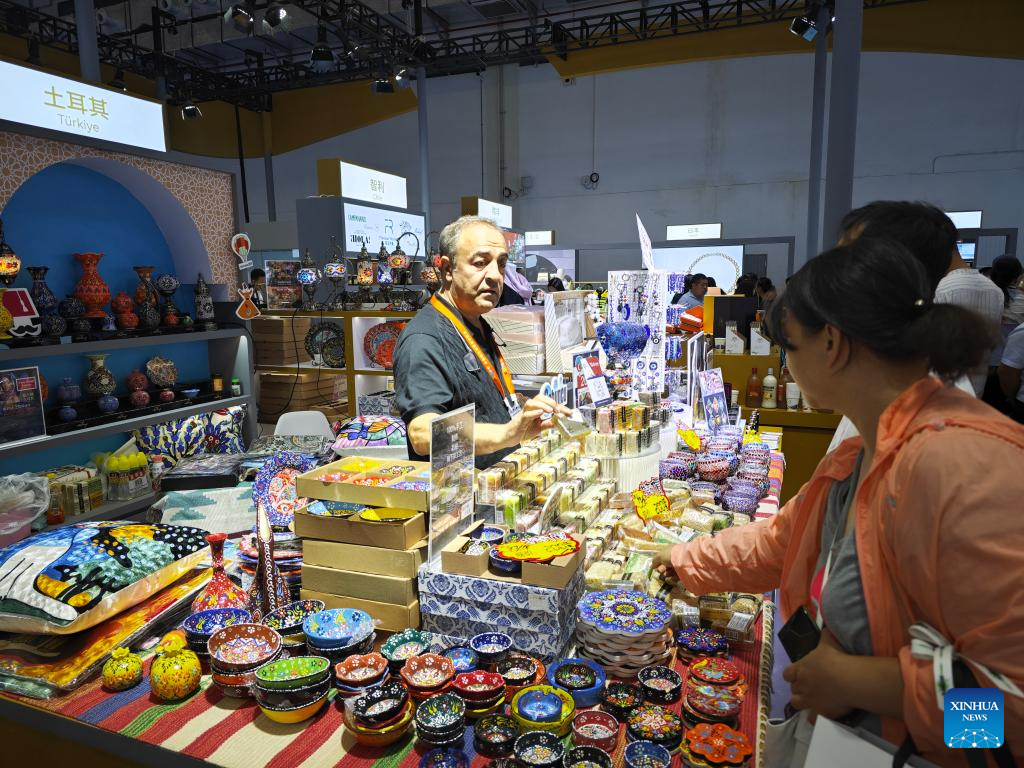 This photo taken on April 16, 2024 shows ceramic handicrafts from Trkiye displayed during the fourth China International Consumer Products Expo (CICPE) in Haikou, south China's Hainan Province. (Xinhua/Zhou Huimin)